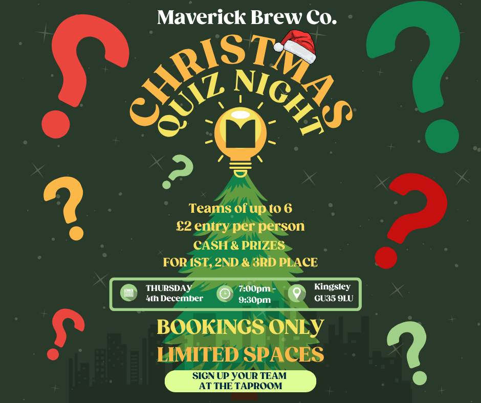 Have you booked a table for your team (up to 8 per team) to play in our special Christmas themed Maverick quiz?